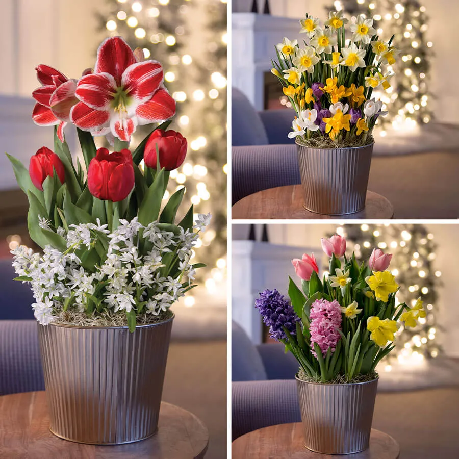With this gift, once a month, for 3 months, we will deliver a beautiful bulb garden, pre-planted and ready to grow. The bulbs arrive in the first stages of growth. The decorative container ships with the first month's plant, and in subsequent months, the plants are shipped in nursery pots. In just a few weeks, with a little water and some indirect sunlight, the gorgeous blooms will appear. Bloom times may vary.