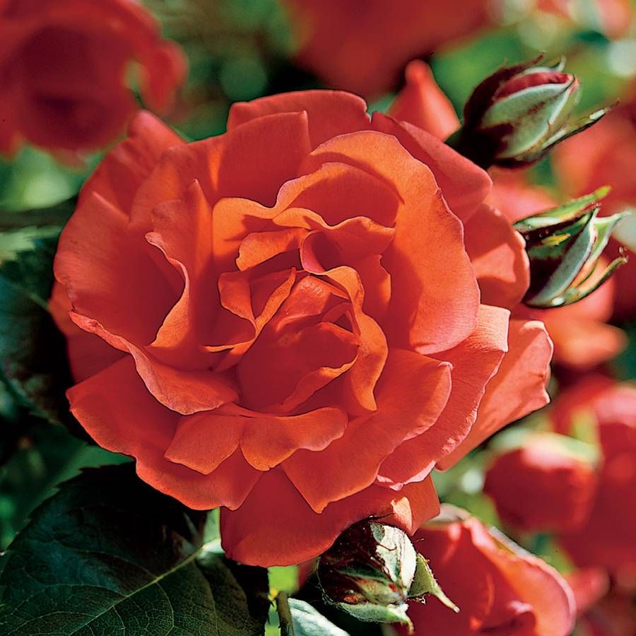 This is a rose that will look slightly different in a variety of lights. Sometimes it appears to be a rich deep orange, infused with pink. Other times it looks like a watermelon slice. As it matures, it appears more pink than orange. But no matter what color you assign it, Blaze of Glory is always consistently beautiful.
