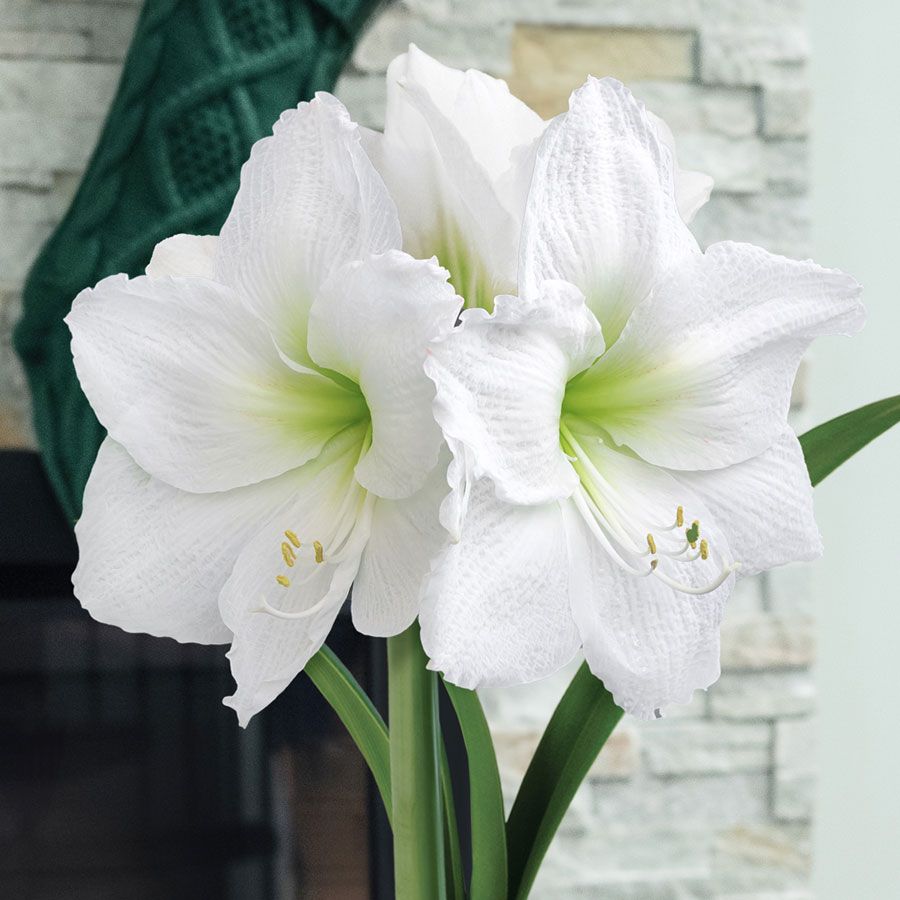 Place your amaryllis in direct sunlight with room temperatures ranging between 65° to 75°F. Blooms will last longer if moved to a cool spot between 55° to 65°F at night. Turn regularly to keep stems from leaning toward the light source.