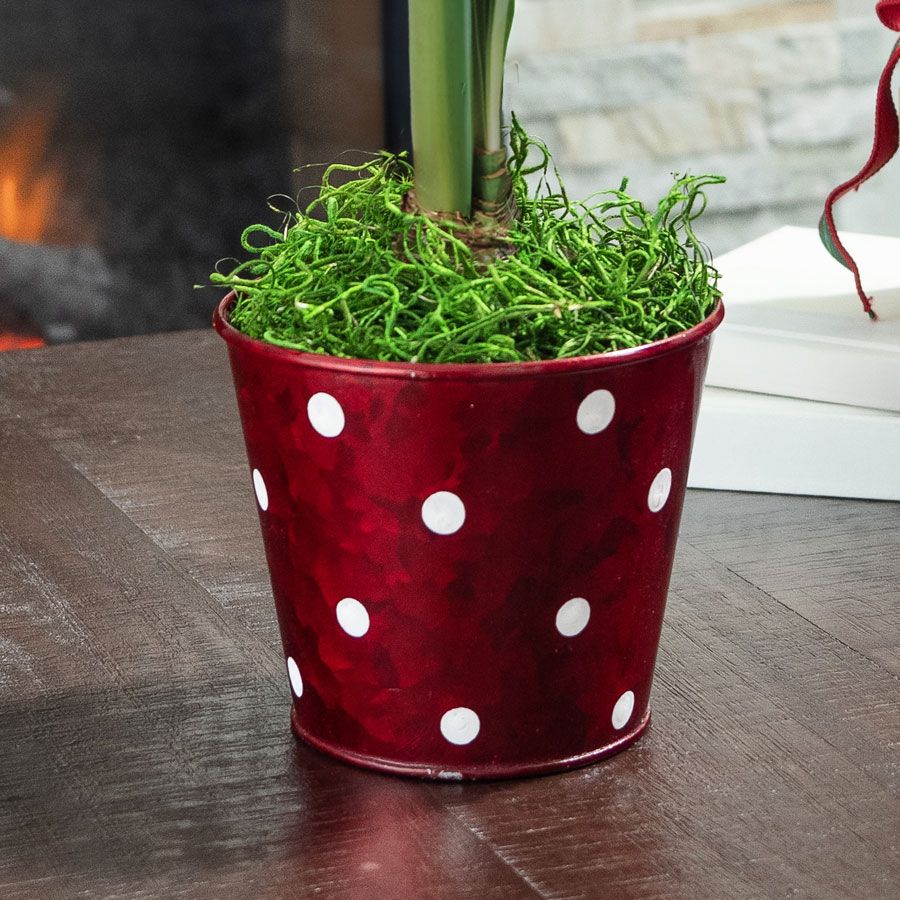 The Cheerful Winter Wedding Dance Amaryllis Flower creates a fabulous festive vibe for holiday displays. A Wedding Dance amaryllis bulb, nestled in a cute red & white polka dot container, blooms in large, long-lasting crisp white flowers, adding a bright and buoyant touch to any space. This holiday amaryllis makes a thoughtful gift for anyone on your list, and it makes a great business-to-business gift too.