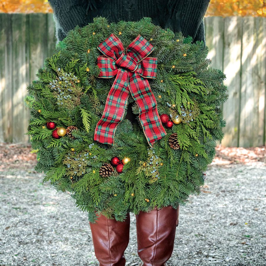 Light up the season with a classic fresh evergreen wreath