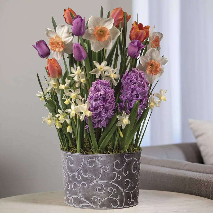 Leave a ReviewThe premium bulbs in this special assortment are pre-planted in a grower’s pot inside a decorative container and are beginning to sprout. Follow these simple care instructions, and in just a few weeks, your bulb garden will be bursting with fresh color and fragrance.