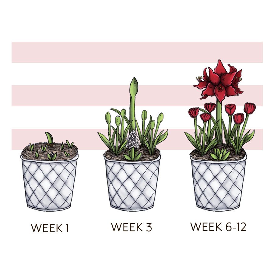 Beginning in 2 to 4 weeks, each variety will flower in its natural sequence, brightening your home with a long succession of blooms. Remove flowers as they fade.