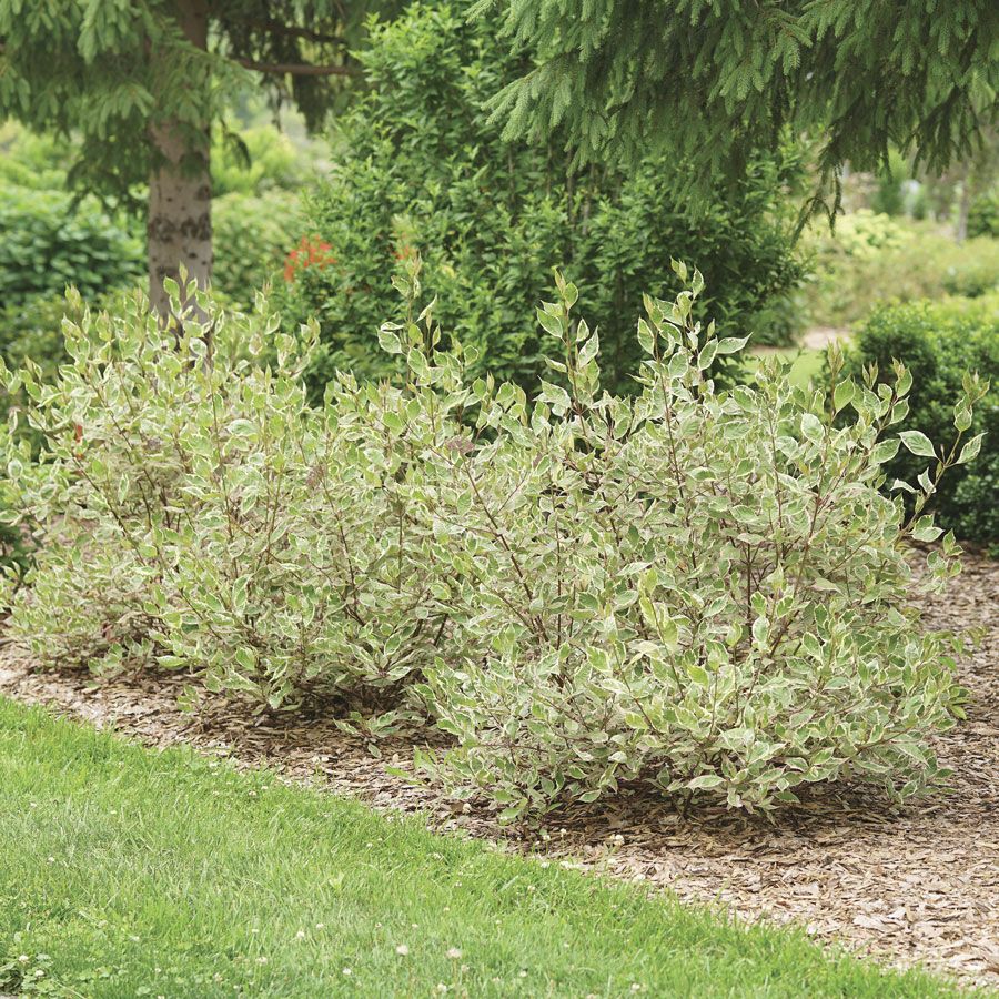 A Cornus alba species, commonly called dogwood, red-barked dogwood, white dogwood, or Tatarian dogwood, Sgt. Pepper has a moderate to vigorous growth rate and a broad, upright, spreading habit. Shown to best effect when grouped or massed, dogwood shrubs are perfect for mixed beds and hedges. But they also make great specimen plants.