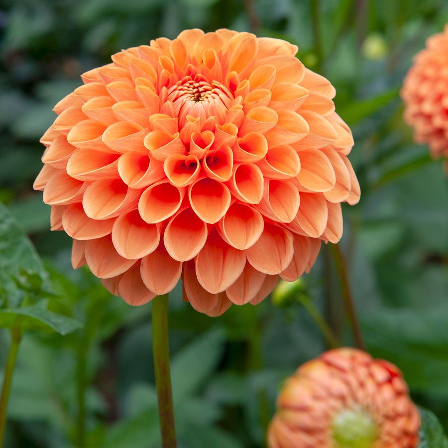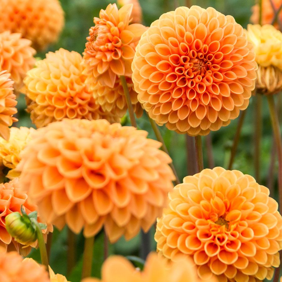 Plant Dahlia 'Sylvia' Pom Pon as the frost recedes in early spring, post-frost threat, and from the warm days of midsummer to the cool embrace of late autumn, this pompon dahlia graces the garden with charming 4-inch spherical flowers with tightly rolled, cupped petals in shades of orange, ranging from peach to coral. Supported by robust, resilient stems that stand up straight, even in rain, the nectar- and pollen-rich blooms beckon bees, butterflies, and hummingbirds alike to the garden for months. These enduring blossoms serve as exquisite cuts for late-season bouquets and floral arrangements. Cultivating more blooms with each cut, these dahlias proliferate generously.