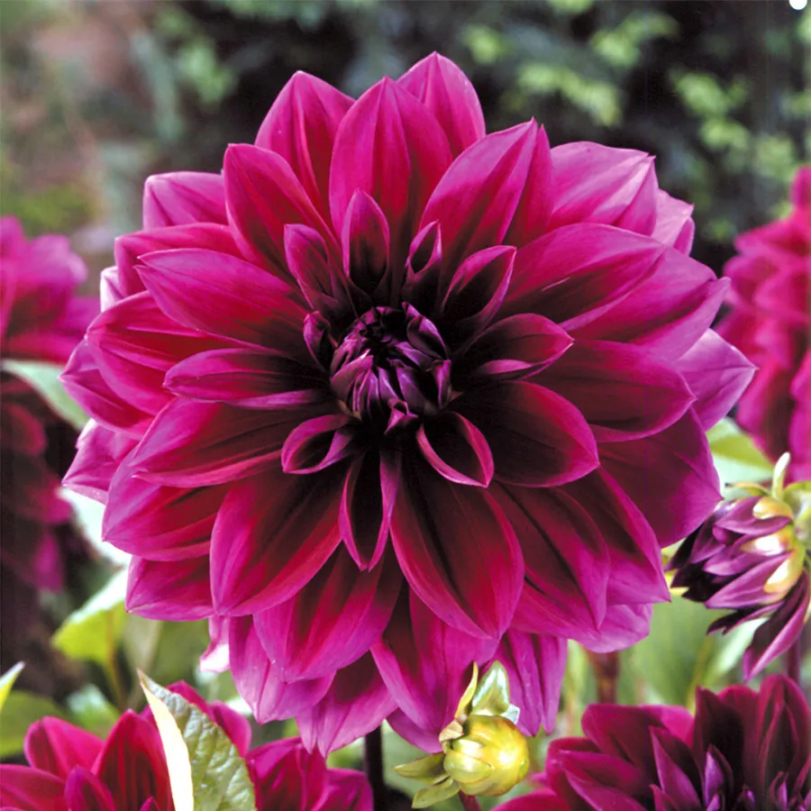 'Thomas Edison' is a decorative dahlia celebrated for its towering height, lush dinnerplate blooms, and enduring elegance. Standing 36 to 48 inches tall, this gardener's favorite begins its show in midsummer, continuing through fall and often until the first frost. Its fully double, 9-inch flowers feature rich purple petals with a velvety finish, arranged in perfect symmetry. These striking blooms are ideal for dramatic monofloral bouquets or as highlights in mixed arrangements. As a bonus, the more you cut, the more this beauty will bloombut be sure to harvest flowers just before they fully open for the best results.
