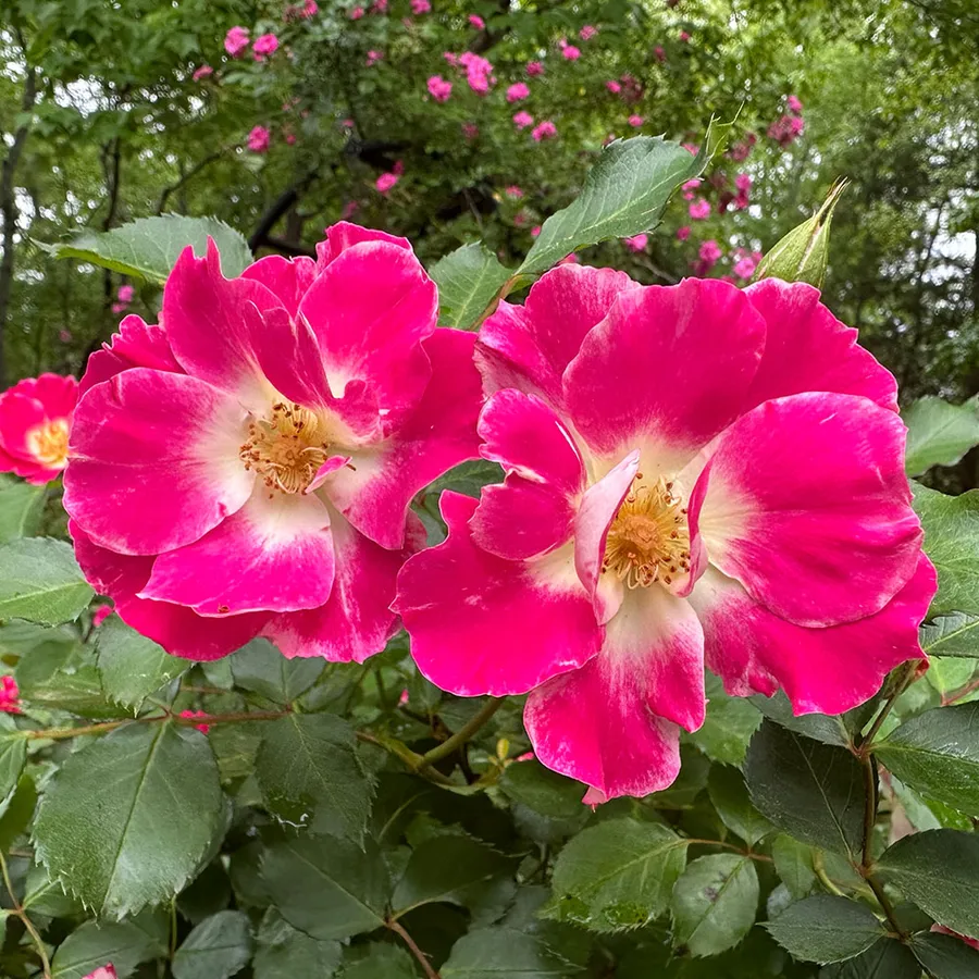 Flash Gordon floribunda rose brings a bold, modern flair to the garden with its vivid cerise pink blooms, softly blended with touches of white and pinky-white on the reverse. Each flower opens in a semidouble, open form that showcases its 10 to 14 petals with relaxed charm. Blooming in small, lively clusters from short, rounded buds, these 4- to 5-inch blossoms draw the eyeand attract beesthroughout the growing season. With a tall, semi-shrubby habit that reaches 5 feet high and 5 feet wide, Flash Gordon is as much a structural feature as it is a floral standout, wrapped in semi-glossy, mid-green foliage that stays handsome all season.