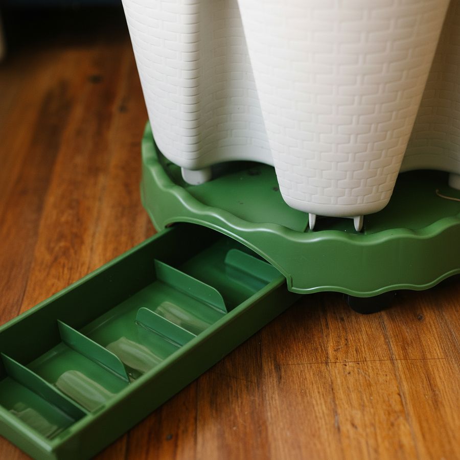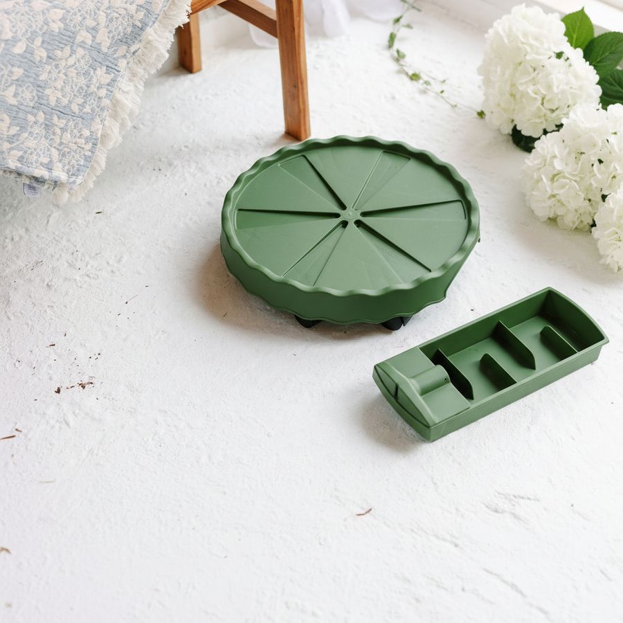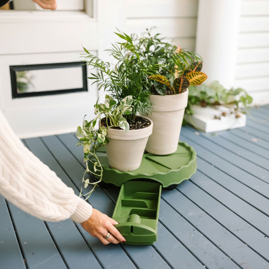 The GreenStalk Ultimate Mover Base in evergreen offers a refined solution for managing container gardens indoors with greater flexibility and control. Designed to support planters up to 16 inches in diameter, including any size GreenStalk Vertical Planter, this rolling base makes it simple to reposition heavy containers while helping keep floors and patios cleaner. A built in drip drawer holds up to 1.75 liters of water and features a convenient water level indicator, helping reduce spills and protect indoor surfaces.