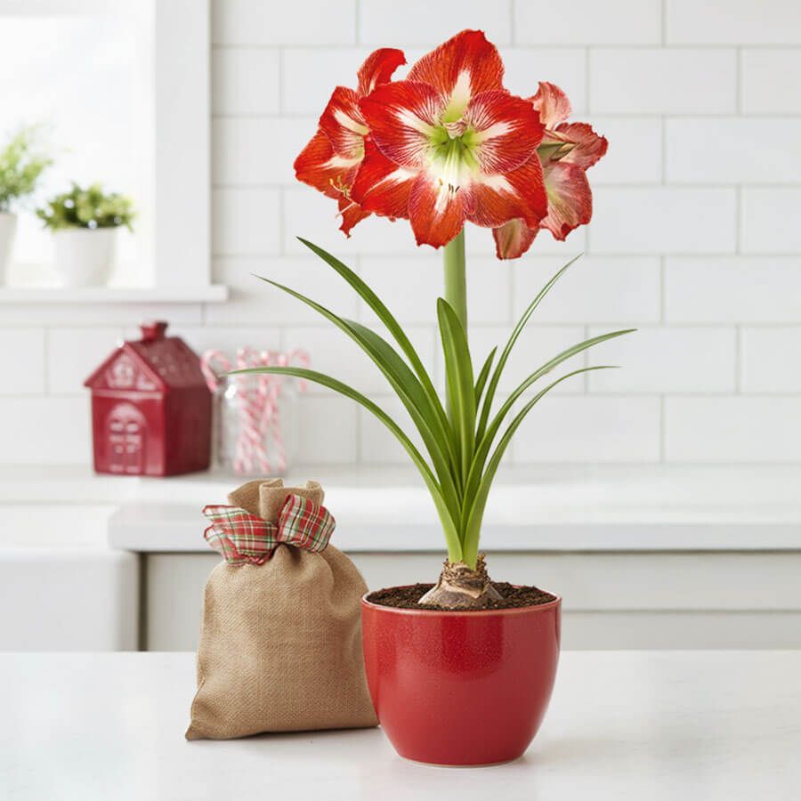 Surprise them with the joy of growing a holiday favorite at home. This DIY set features 3 bare Minerva Amaryllis bulbsfamous for bright red petals, white star center, and cheery personality. The bulbs are nestled in a simple burlap bag tied with a festive ribbon, making it an easy and gardener friendly gift. Ideal for all ages, this bloom brings color and fun to the season with minimal effort and maximum delight. Decorative pot and soil not included.