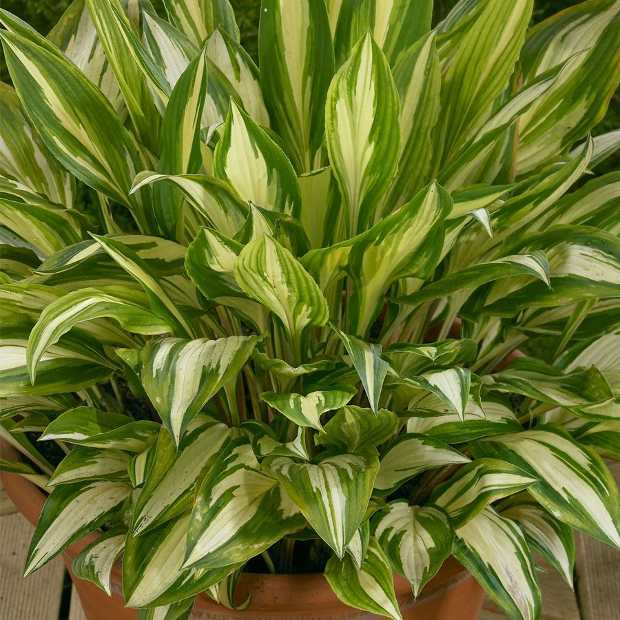 Hosta 'Cherry Berry' is a standout variety, growing 12 to 18 inches tall and wideperfect for small-space gardens or container planting. Its finely textured, lance-shaped leaves feature striking variegation, with deep green margins framing white to cream-colored centers. In summer, cherry red scapes rise gracefully above the foliage, bearing delicate purple blooms that attract hummingbirds and butterflies. By fall, the scapes give way to bright red seed pods, adding seasonal interest. The stunning combination of colors and textures makes this hosta a delightful choice for mixed floral arrangements.