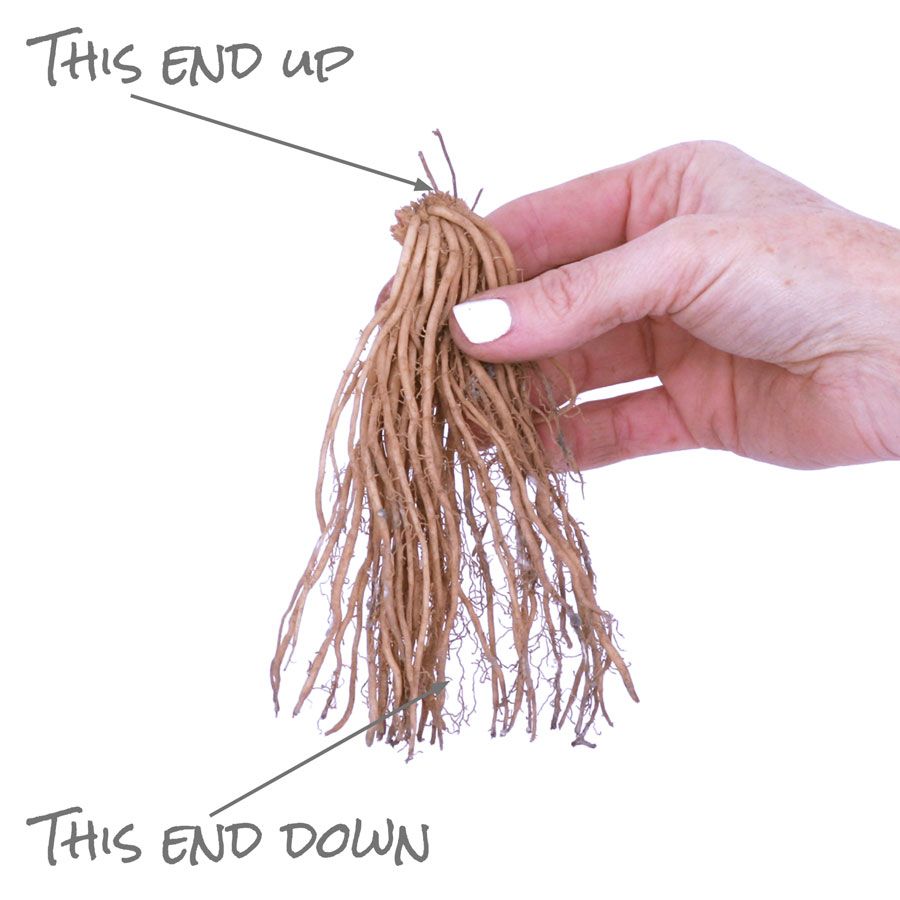 Plant White Feather hosta roots in spring, spacing them 12 to 36 inches apart and burying them 1½ to 2 inches deep.