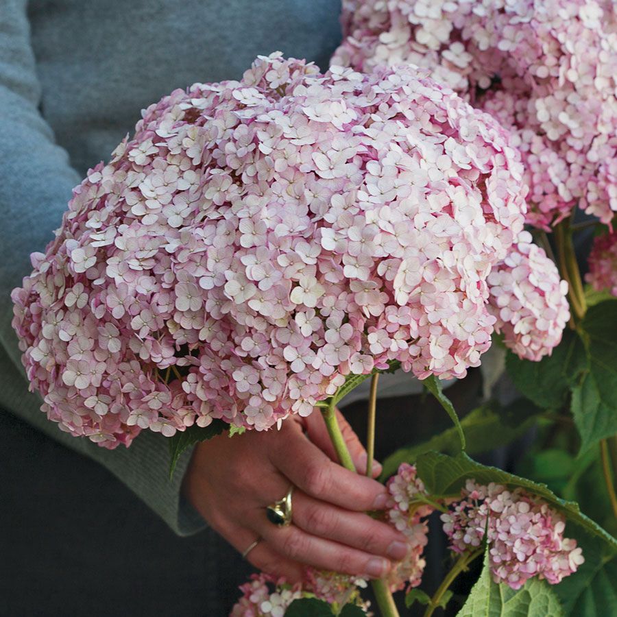 Hydrangea Incrediball® Blush, a native plant, is as tough as it is beautiful. A freely branching, triploid plant, the shrub has a compact, upright, rounded, spreading habit. The blooms are held on tall, sturdy stems that support the massive blooms even through heavy rain. And the blooms are resilient too, blooming year after year even after harsh winters. Reaching 4 to 5 feet high and wide, the shrub is perfect for adding a pop of color to a bed or border, for bringing tons of interest with a mass planting, and for gracing your home with cut arrangements, fresh or dried.