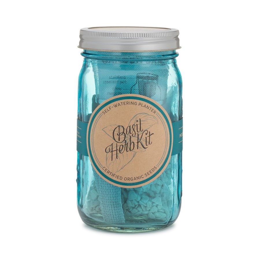 Although vintage inspired, Basil Modern Sprout Garden Jar is a modern take on mason-jar growing. It employs a self-watering system that continually wicks just the right amount of water and nutrients up to the plant's roots. Growing your favorite herbs indoors year-round has never been easier. And the best part is, the more you cut, the bushier they grow, and the bigger the yield.
