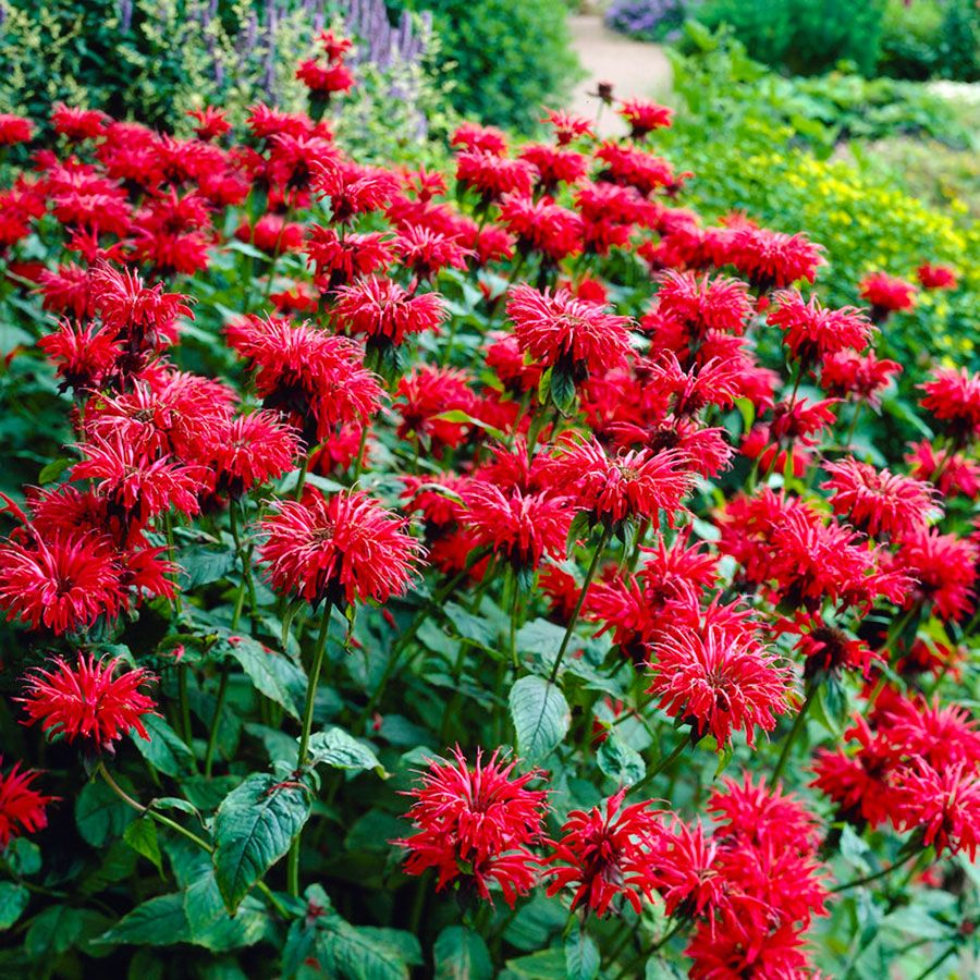 These Monarda didyma varieties, commonly called bee balm or bergamot, are hardy herbaceous perennials (Zones 4-10) that spread reliably through creeping rhizomes and self-seeding. They form lush colonies perfect for naturalized plantings or massed displays along streams and ponds. Monarda Mix bee balm varieties also create eye-catching borders, complement butterfly and cottage gardens, and thrive as specimen plants in containers.