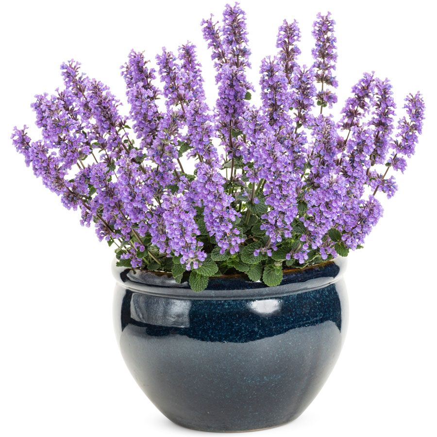 Glowing like a blue flame in the summer sun, this perennial is truly the cat's meow! Great news for arid gardens, Nepeta was built to endure summer's worst tendencies. No matter what the season throws at Nepeta 'Cat's Pajamas'extreme heat or droughtthis sun-loving classic stays colorfast and lovely all summer long. This variety looks gorgeous planted in mass, tucked in borders, and bursting out of containers.