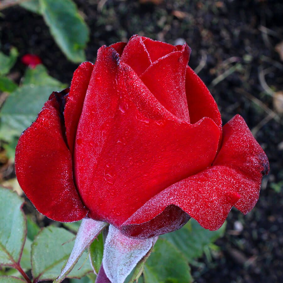 This All-America Rose Selections (AARS) Winner 1984, named for the Los Angeles Olympics, is truly one of the reddest of red roses, from its early urn-shaped buds to its final flash of glory.