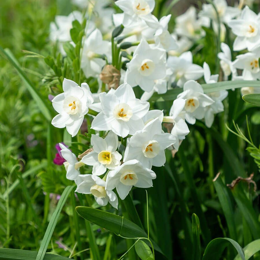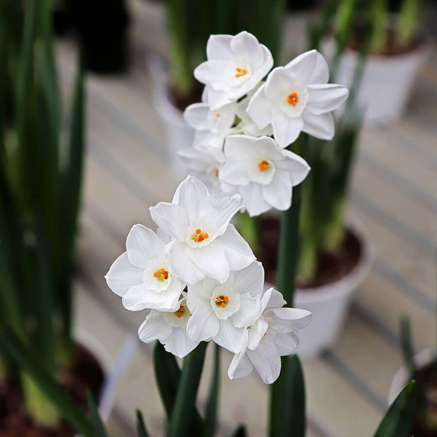 Narcissus Paperwhite cheer up gloomy winter days with fragrant, 3- to 4-inch flowerheads of white blooms on 16-inch stems. Extra-large flowering bulbs produce big, healthy blooms that can be forced to bloom anytime between Thanksgiving and Valentine's Day.