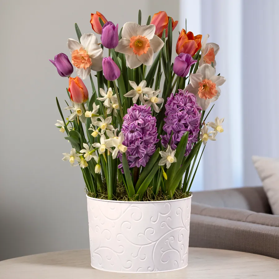 Leave a ReviewThe premium bulbs in this special assortment are pre-planted in a grower’s pot inside a decorative container and are beginning to sprout. Follow these simple care instructions, and in just a few weeks, your bulb garden will be bursting with fresh color and fragrance.