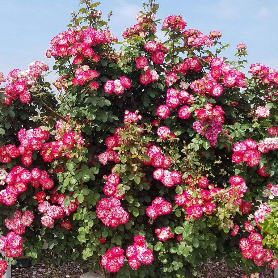 Peppermint Party has good disease resistance. This highly versatile rose can be grown on trellises, poles, arches, and pillars, trained along fences or walls, or allowed to fountain on its own.