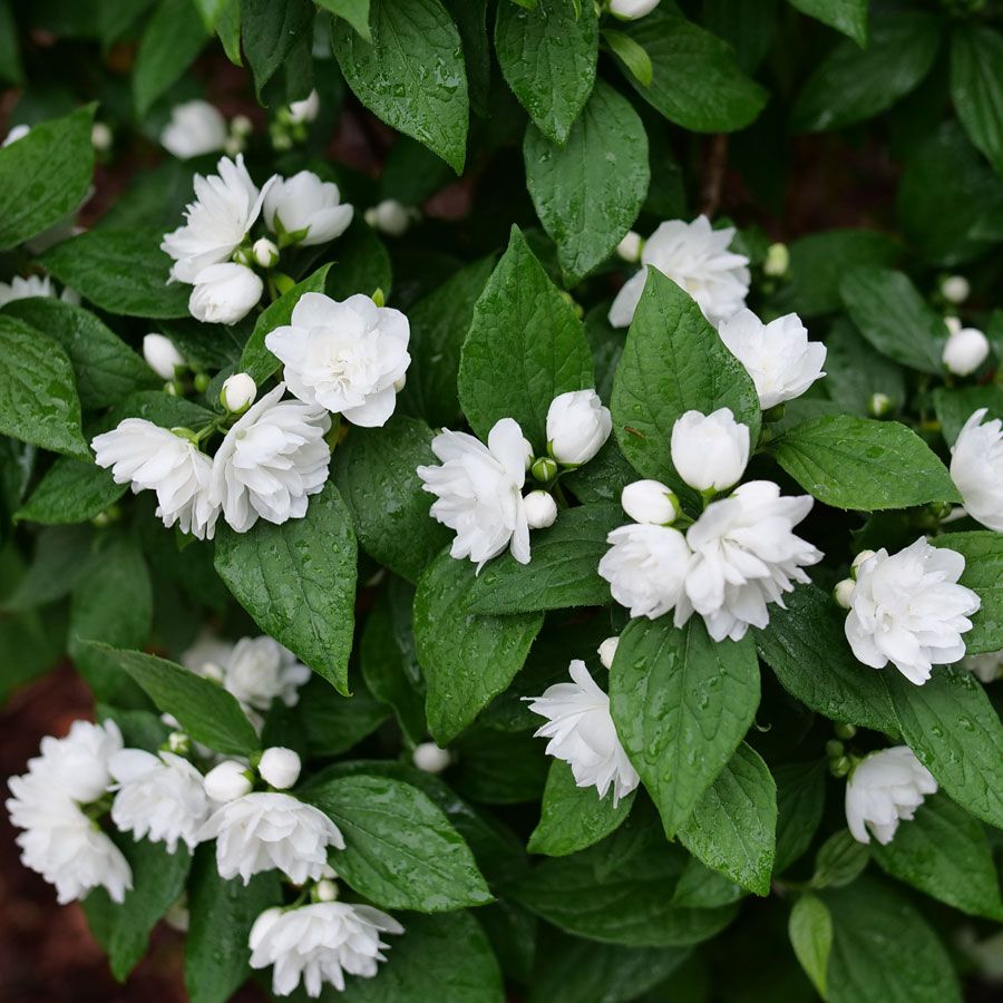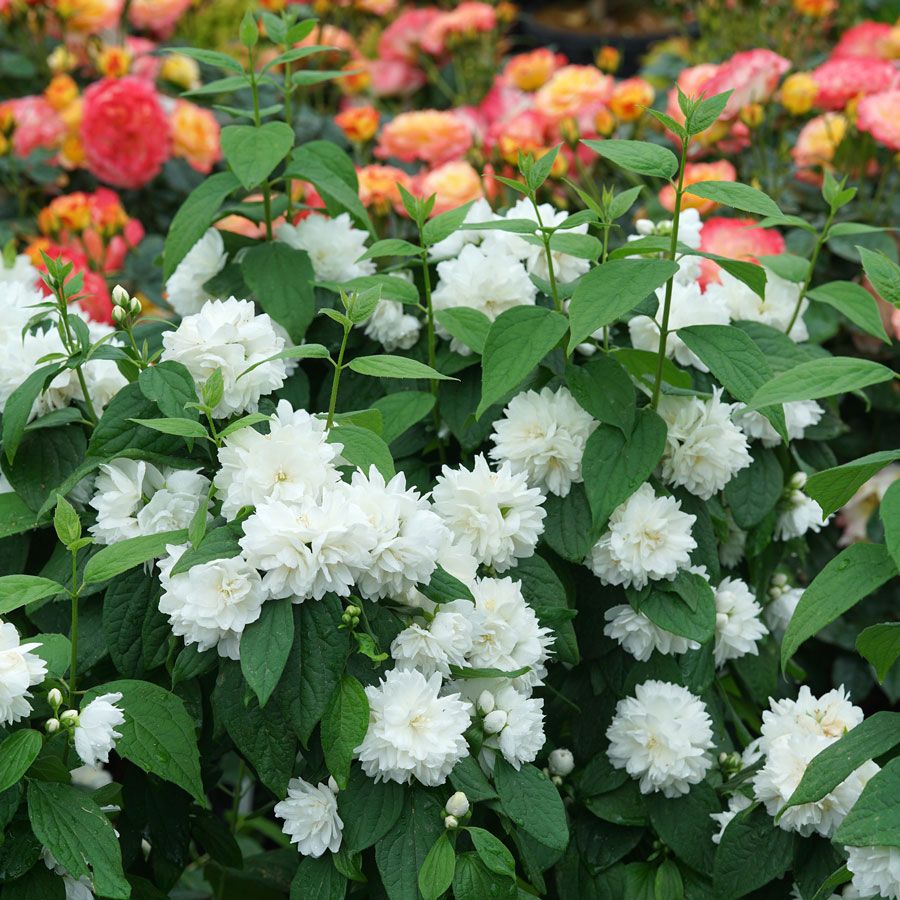 A Proven Winners® ColorChoice® Flowering Shrubs variety, Philadelphus Illuminati Spice™ is a native deciduous shrub offering 3 seasons of interest, blooming in early summer. Borne on elegant, arching stems, abundant clusters of large, sweetly fragrant white double flowers add a touch of old-fashioned charm to the garden and perfume the air with a citrusy orange-blossom scent, attracting bees, butterflies, and hummingbirds. But they also make excellent cut flowers for floral arrangements. The lustrous leaves add color and texture to the garden all season and are often used as foliage filler in floral arrangements.