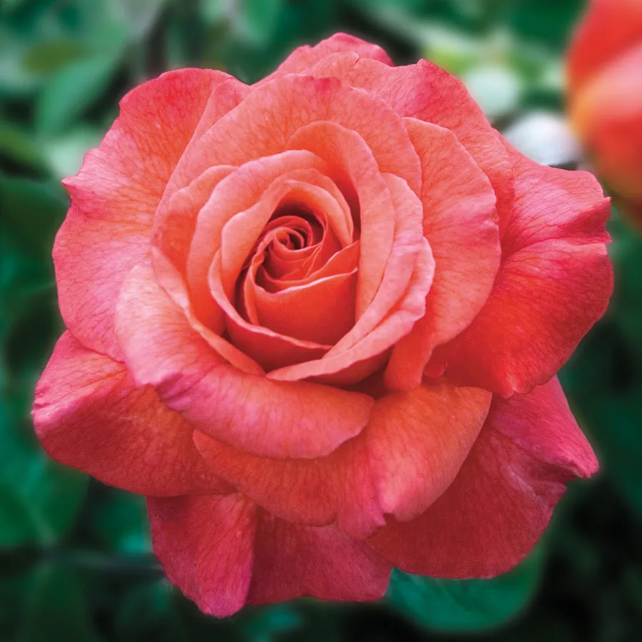 Elegantly sculpted petals display peaceful tones of coral, rose, red and peach on sturdy, high-centered blooms. The distinctively pointed ovoid bud swirls open gently to release an enticing pear fragrance.