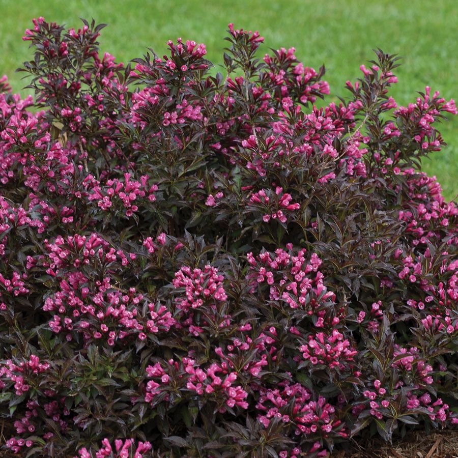 A Proven Winners® ColorChoice® Flowering Shrubs variety, Weigela Spilled Wine® is a smart little shrub that looks like an exotic special, but actually it's easy to grow, very dependable, and super long-blooming. The handsome deep purple foliage serves as a delightful backdrop for its beautiful pink-magenta flowers, which are irresistible to butterflies and hummingbirds.