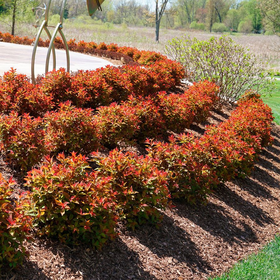 A classic landscape plant, spirea, also known as meadowsweet, is an all-around tough bush. Although Double Play Doozie® has the typical neat, mounded habit of spirea, it also has compact, dense branching; super-showy bright red new growth; and amazing fall color. It is a lovely specimen plant for beds; a great filler for a thriller-filler-spiller container garden; and an excellent choice for edging and borders.