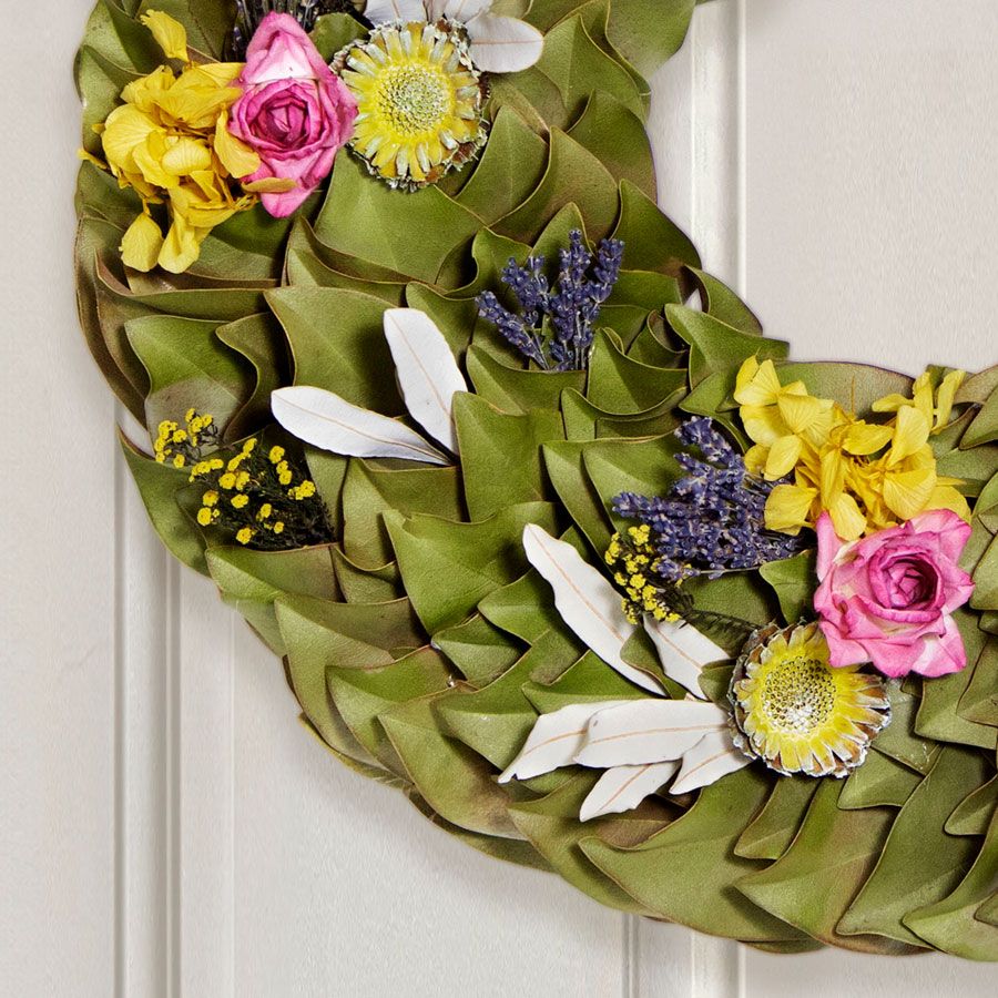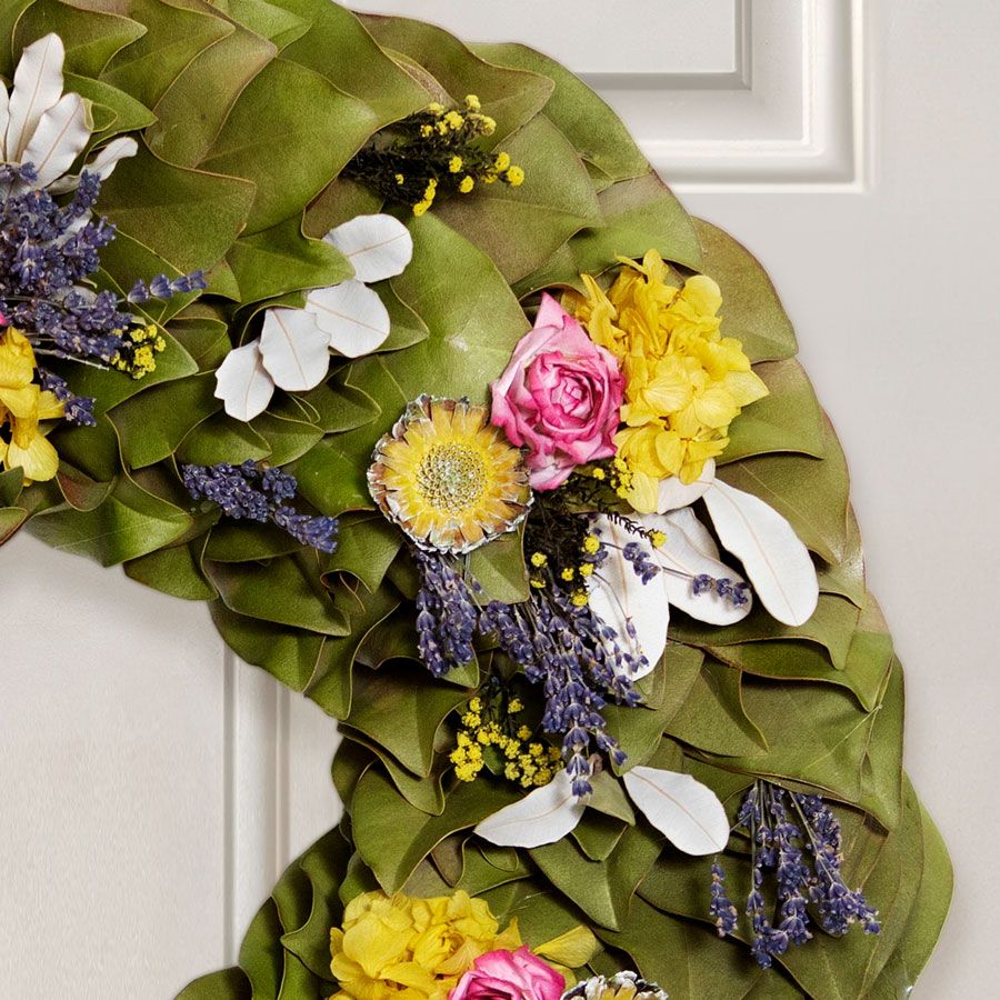 Once dried, wreaths may be stored for future seasons, although stems may not withstand long-term storage. Remove any remaining fresh greens before placing the arrangement in its original box, and store in a cool, dry location away from heat and humidity. Centerpieces and bouquets are best enjoyed fresh and are not typically suited for storage.