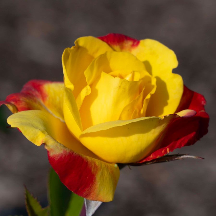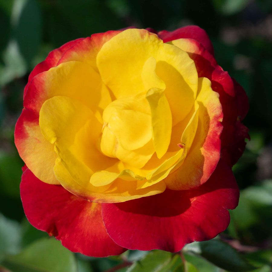 A floribunda rose from the Kordes breeding program, Sunbelt® Garden Flame™ flowers heavily in continuous waves over a long season, from late spring and well into fall, possibly to first frost. Borne singly or in small clusters of 2 to 3 large conical buds, the 3-inch double blooms have 20 petals that emerge deep yellow suffused with orange and finish velvet red. The flowers are ideal for cutting. Just one snip makes a lovely bouquet.