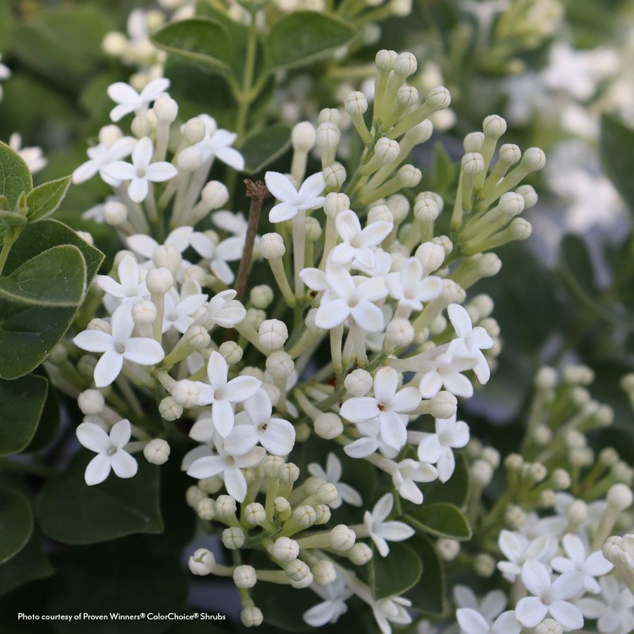 Syringa Bloomerang Showmound® is the first white-flowered variety in the best-selling Bloomerang series from Proven Winners® ColorChoice® Flowering Shrubs. This compact, naturally mounded lilac reaches just 1.5 to 3 feet tall and 2 to 3 feet wide, making it ideal for small gardens, borders, or containers. It offers the charm of classic lilac fragrance in a smaller, more manageable size, with pure white flowers that brighten spring landscapes.