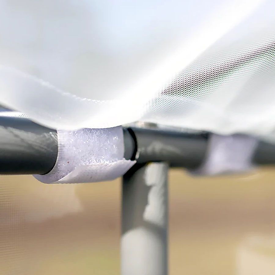 The system is easy to install: simply attach the arched, durable steel frame to the interior of the garden bed through the existing bolt holes; clip the pre-cut irrigation tubes to the frame; and place the mesh cover over the frame, securing it tightly with adjustable Velcro loops. That's it! To access your plants, simply unzip the center panels and secure on top with the attached Velcro strips. You'll have plenty of head room and so will your plants.