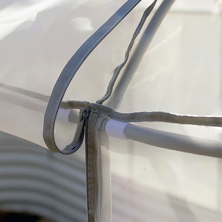 The system is easy to install: simply attach the arched, durable steel frame to the interior of the garden bed through the existing bolt holes; clip the pre-cut irrigation tubes to the frame; and place the mesh cover over the frame, securing it tightly with adjustable Velcro loops. That's it! To access your plants, simply unzip the center panels and secure on top with the attached Velcro strips. You'll have plenty of head room and so will your plants.