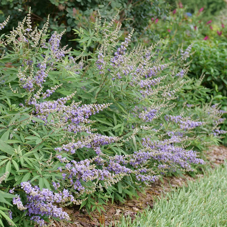 A Proven Winners® ColorChoice® Flowering Shrubs variety, Vitex Rock Steady™ is a deciduous shrub with unique foliage and flowers. Extremely long blooming, the attractive shrub flaunts palmate leaves and sets spires of lavender blooms for months, from late spring through late fall, typically to first frost. Nectar and pollen rich, the flowers are a food source for pollinators, including butterflies and hummingbirds. Bees also use the flowers to produce honey.