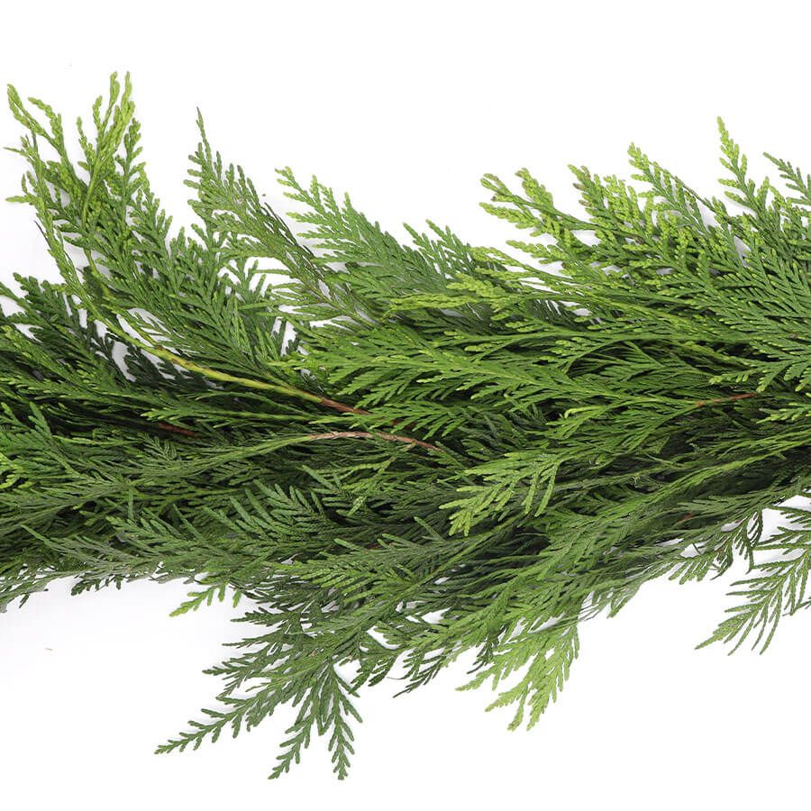 Bring the fresh scent and soft texture of Western red cedar indoors or out with this classic 4-foot garland. Hand-strung on a sturdy rope, it's flexible enough to drape over mantels, wrap around bannisters, or frame an entryway. A beautiful base for your own ornaments or lights, or simply enjoy its natural simplicity as-is. Expertly assembled, it's an easy, elegant way to deck the halls with lasting greenery and rustic charm.