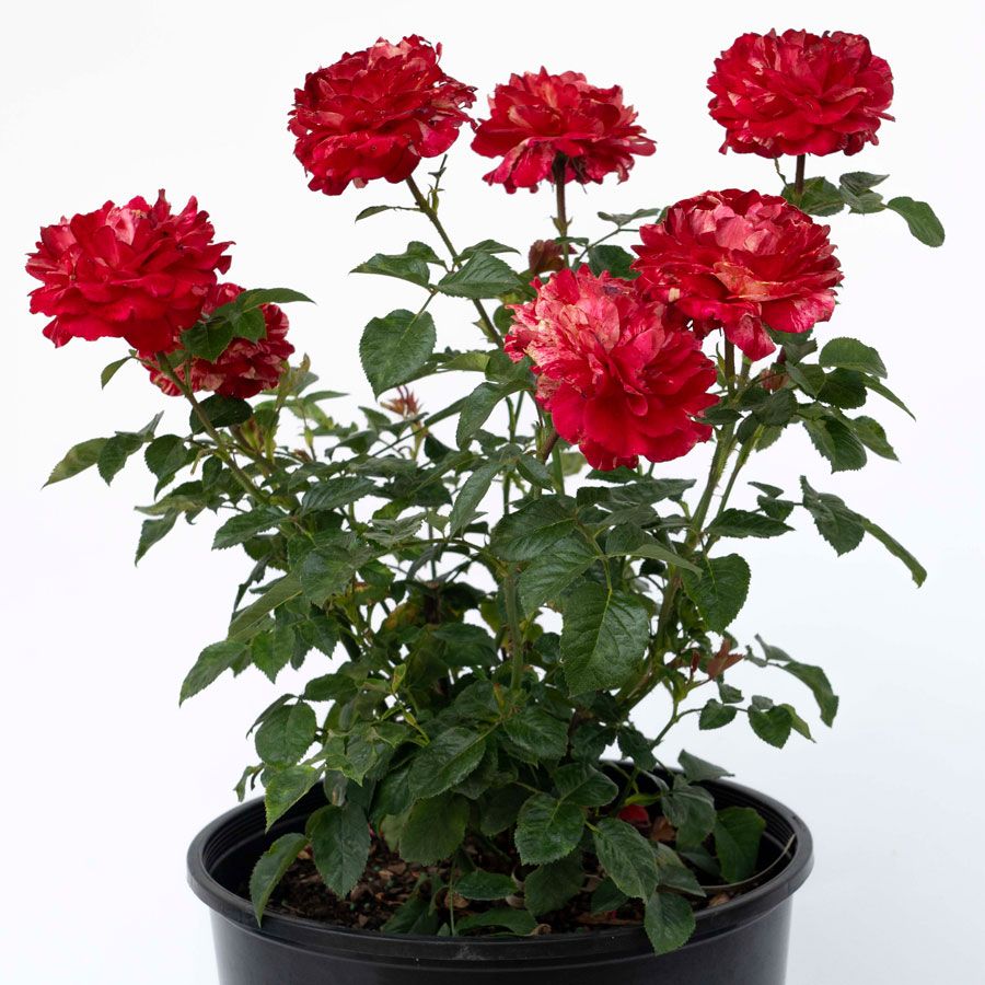 Winning Streak is a small bush that grows vigorously. It has a compact, bushy, rounded habit and good disease resistance. Highly versatile, floribunda roses make excellent landscape, garden bed, low hedge, border, and container plants.